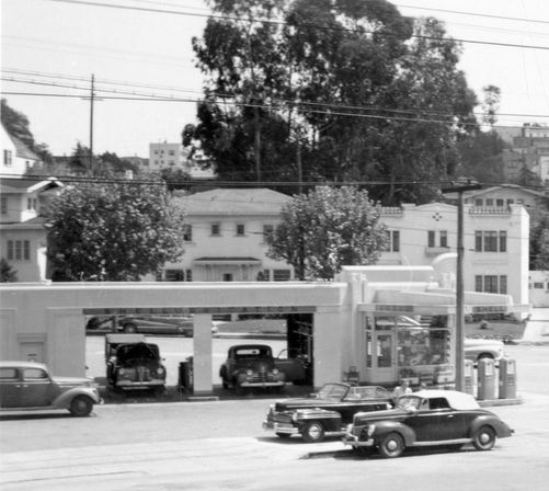 Tidewater Oil Company built a gas station at the corner of Highland and Vista Avenues where Bank of America is currently located.