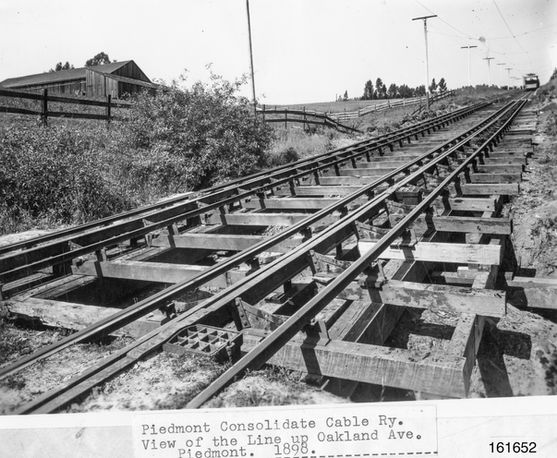 In 1888, responding to the demand for more adequate transportation facilities, the citizens of the Piedmont district called a meeting to discuss the proposal for constructing a cable railway. Cable cars had been operated with success in the hilly city across the Bay. The project was approved and the Piedmont cable line was built and completed in 1890. The cars were operated along a cable 3,600 feet long. On the opening day, more than twenty thousand persons journeyed from points throughout the Bay region to see the new line in operation and to view the beautiful panorania of land and water which still lures homeseekers to the Piedmont region.