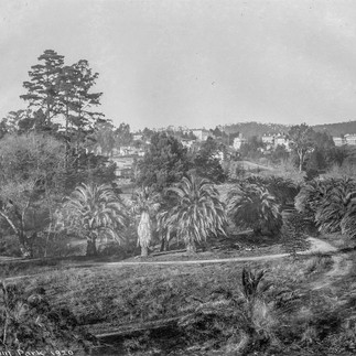"Monument marker at Highland and Pala Avenues" (4 Pala Avenue is in the back before the second story was added) for sightseeing buses on tour of Piedmont places of interest